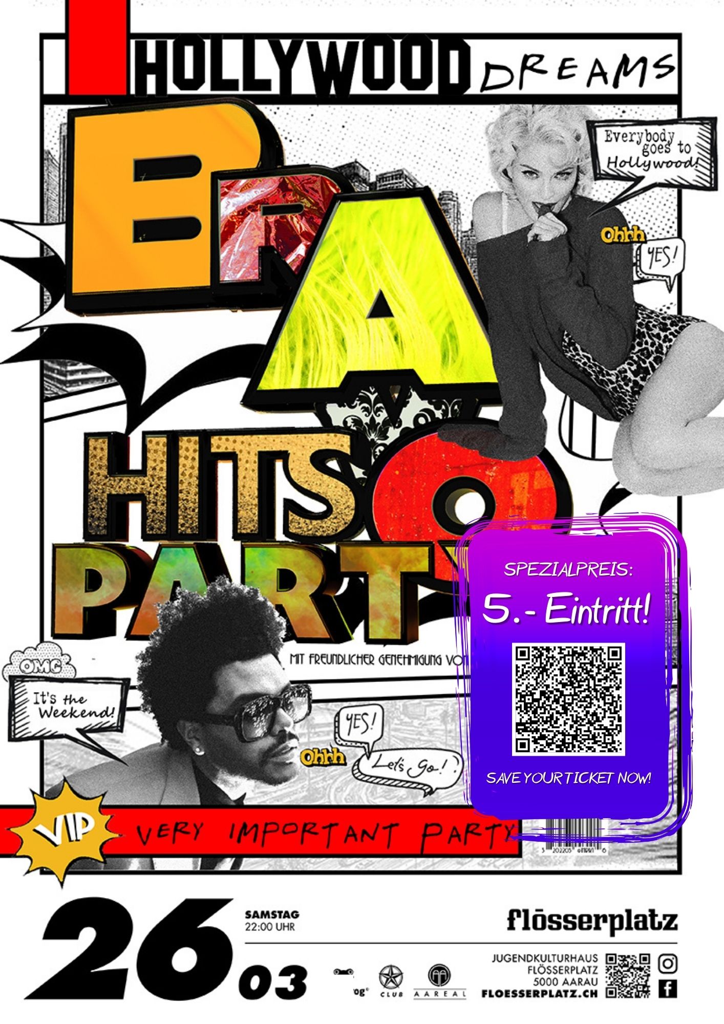 Unter dem Motto «Hollywood Dreams» wird jede Partygänger:in bei uns zum Star. Vergiss nicht, dich in Schale zu schmeissen und lass’ dir diese glamouröse Nacht auf keinen Fall entgehen.